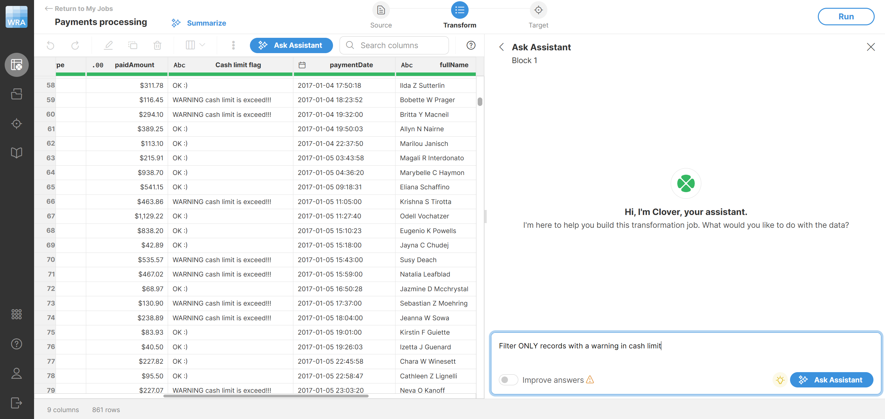 CloverDX Wrangler has always been about making data prep accessible, predictable, and reliable. Now, with the AI Assistant, you can: